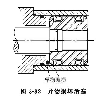 当活塞运动速度很快时,一且缓冲机构失灵或无缓冲,在采用限位行程电气元件控制失灵时,活塞以髙速与缸盖发生冲撞,将特别容易引起活塞在外圆以及内圆倒角处的变形而致损坏。如果是铸造脆性材料,易引起颗粒脱落,若材料中有缺陷,则会成小片、小块状脱落,进而拉坏活塞外圆表面、密封件及缸筒内孔。