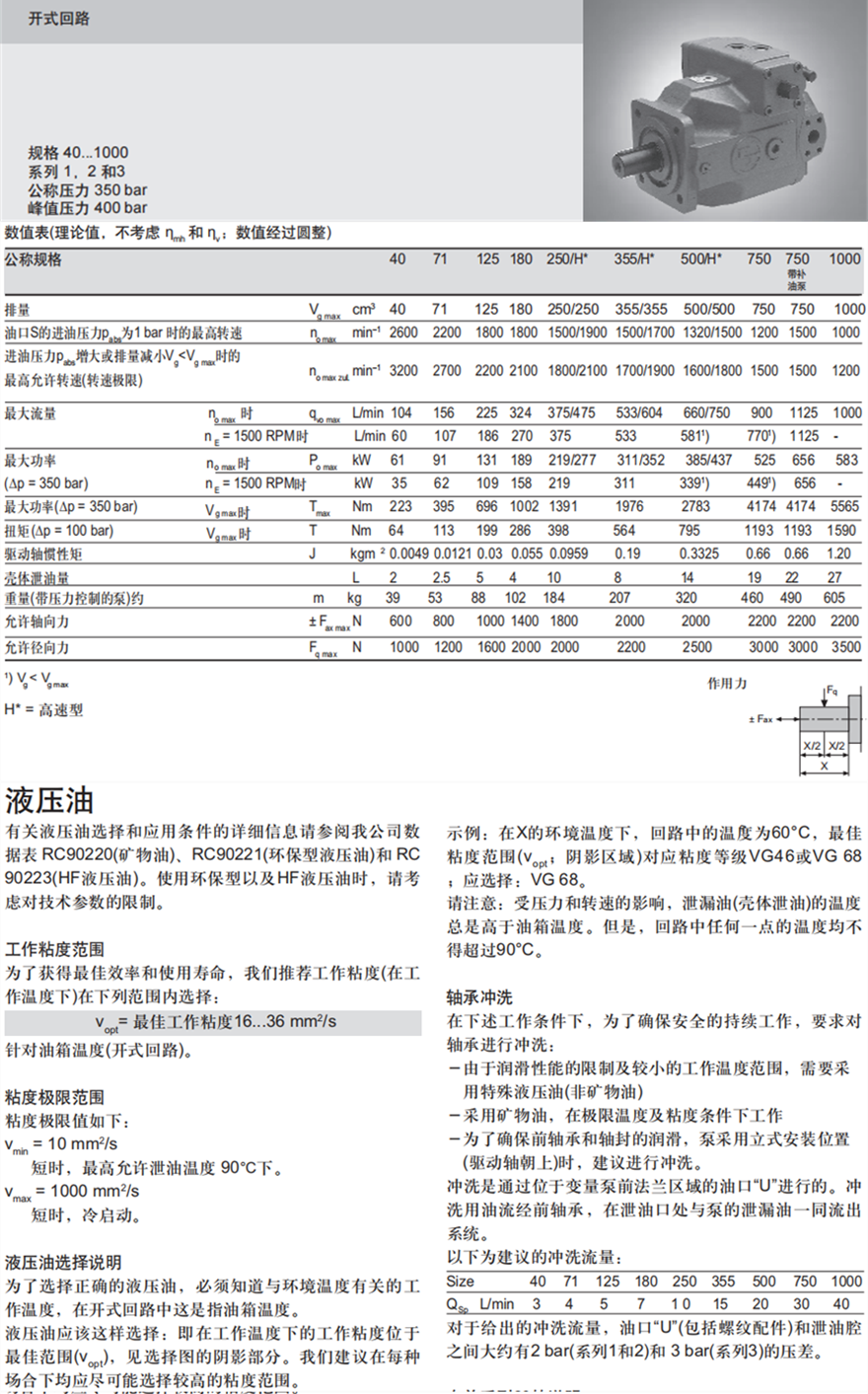 - 力士乐柱塞泵A4VSO液压油的选用和注意事项